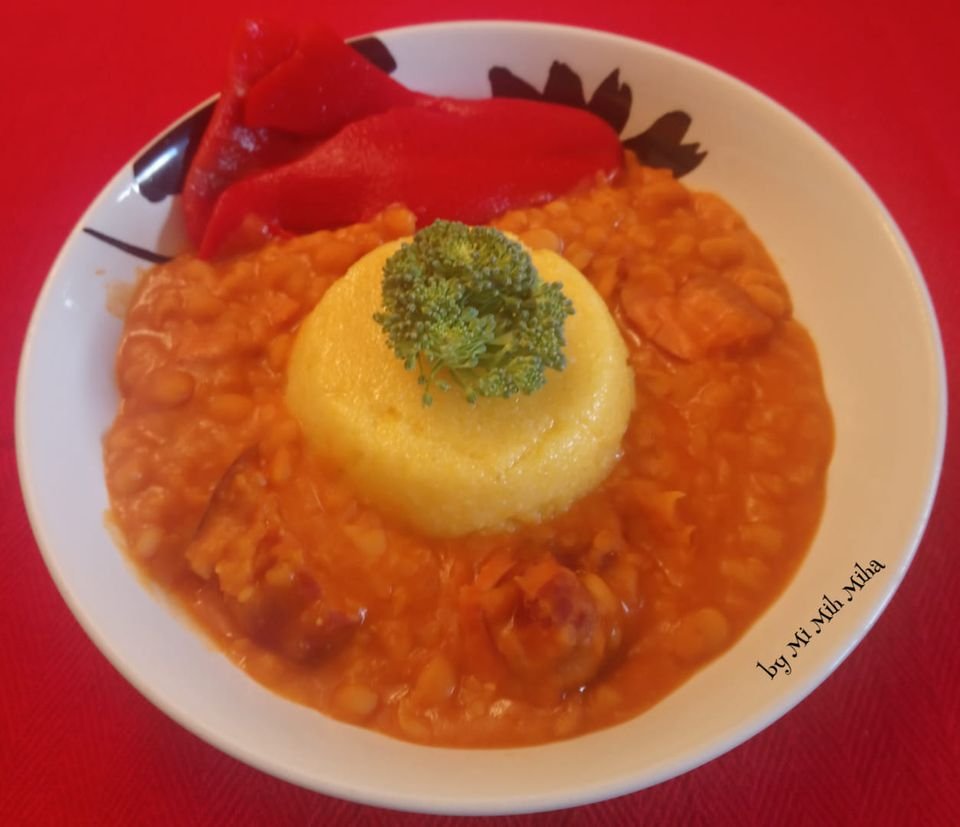 # Buna ziua # MENTINERE# Fix 13 pranz # mancare de fasole cu costita afumata, mamaliga 🌽 calda si ardei copt 🌶️. 🌺 O zi frumoasa va doresc in continuare si pofta buna si voua 🌺 🌺 🌺 🌺 🌺🌺 🌺 🌺 🌺