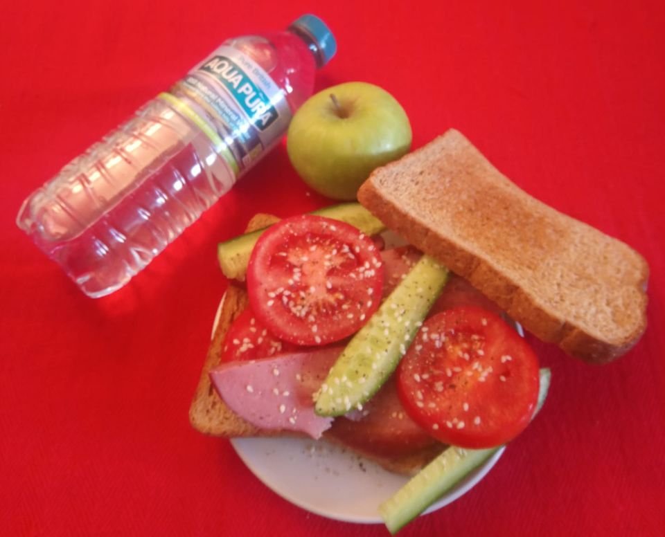 # Buna ziua # MENTINERE# Fix 10 gustarea 1 mar verde 🍏 si pt pranz # 13 sandwich 🥪 cu sunca presata felii de rosii 🍅 si castraveti 🥒 seminte de susan si o sticluta cu apa (plecat la drum cu masina 🚘 si nu am avut de ales) . O duminica frumoasa va doresc in continuare si pofta buna si voua 🌺 🌺 🌺 🌺 🌺🌺 🌺 🌺🌺